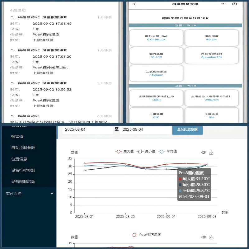 產品標配9款傳感器:分別為溫、濕度傳感器,二氧化碳傳感器,光照傳感器,光合有效傳感器,土壤溫度、水分傳感器,土壤ec值、ph值傳感器。
