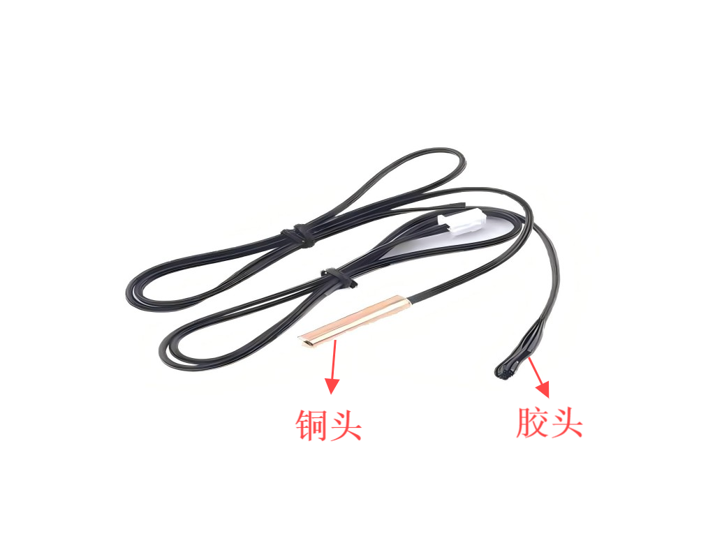 我們的空調(diào)溫度傳感器有銅頭和膠頭兩種選擇,根據(jù)測溫對象來分一般膠頭用來測試環(huán)境溫度,銅頭的測管溫。